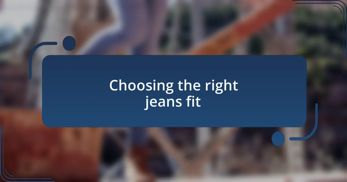 Finding the right jeans fit can truly transform your outfit and boost your confidence. I remember the day I first tried on a pair of high-waisted jeans; it was like I found a long-lost friend. They accentuated my waist and made my legs look longer, which is a win-win in my book. Have you ever stumbled upon a fit that made you feel effortlessly chic? It’s a game-changer.