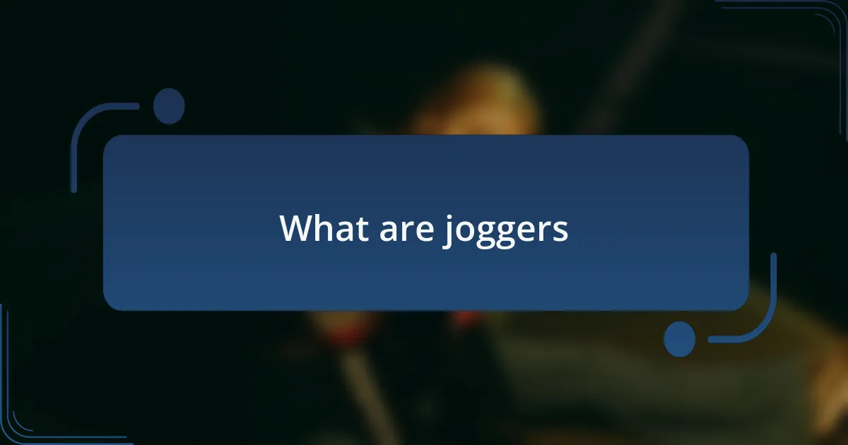 Joggers are a style of pants that combine comfort and casual style, often made from soft materials like cotton or polyester blends. I remember the first time I slipped into a pair; it felt like wearing a hug, perfect for lounging around or running errands. They typically feature elastic waistbands and cuffs, which contribute to their snug fit and versatility.